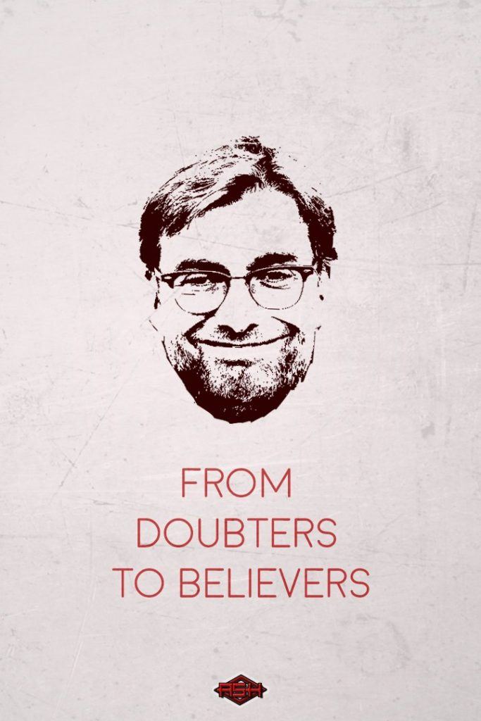Venirea lui Klopp la club a fost cea mai evidentă mutare pe care ar fi putut-o face cei care aveau destinul cormoranilor în propriul pix. Un antrenor capabil să creeze echipe, nu un generator de vedete, a poposit în Liverpool cu sloganul from doubters to believers.