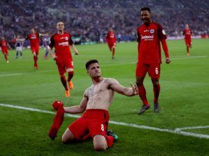 Primul sezon la Frankfurt i-a adus lui Jovic o zestre de 9 goluri. Cel mai important dintre acestea l-a marcat pe 18 aprilie 2018 în semifinala de cupă cu Schalke disputată în deplasare. Era minutul 75 când în urma unui corner Jovic apare la colțul scurt și cu un procedeu desprins parcă din artele marțiale trimite mingea în poartă și pe Eintracht în finala de la Berlin.
