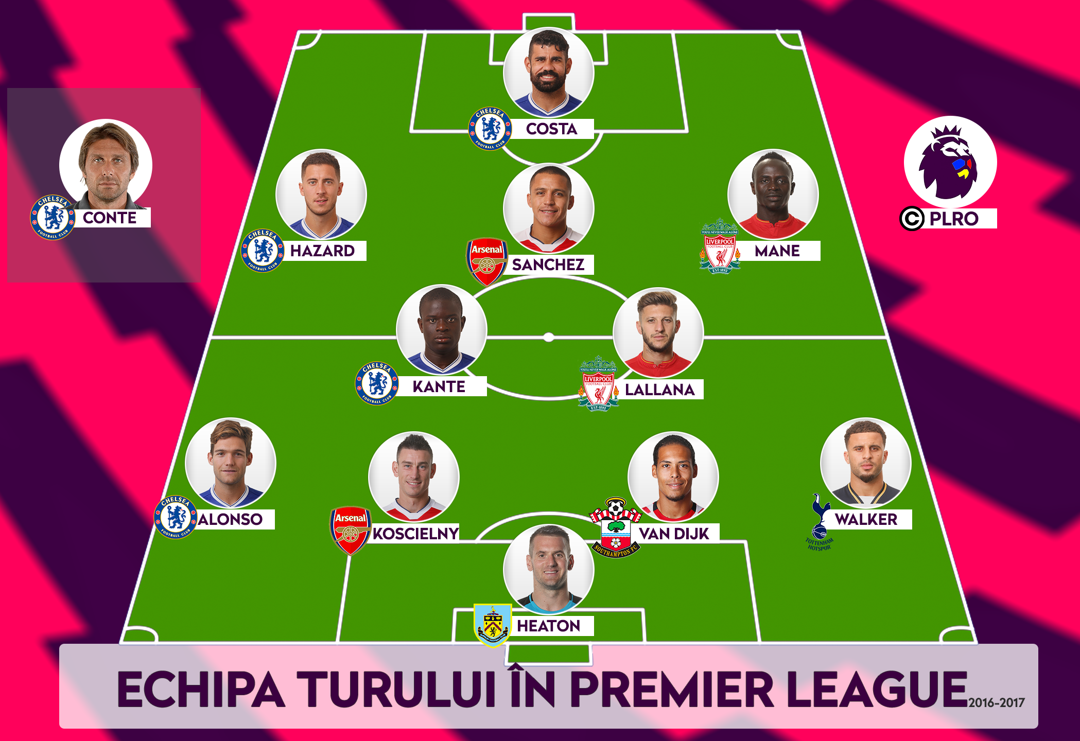 Au fost, de fapt, doi pretendenți la titlul de manager al turului din Premier League: Conte și Klopp. Italianul s-a impus pentru că energia sa fantastică a reușit să transforme lotul lui Chelsea, sufocat parcă sezonul trecut de titlu pe care-l luaseră în 2015. De la acel 3-0 încasat pe Emirates, albaștrii au 12 victorii și schimbarea formulei de joc i-a dus acolo. Conte a făcut-o pe Chelsea să joace fotbal și să câștige, l-a reinventat pe Moses, i-a înviat pe Hazard și Pedro, l-a readus acasă pe David Luiz și l-a inventat pe Marcos Alonso. Să ai asemenea performanțe în primul sezon dintr-un campionat nou este absolut remarcabil.